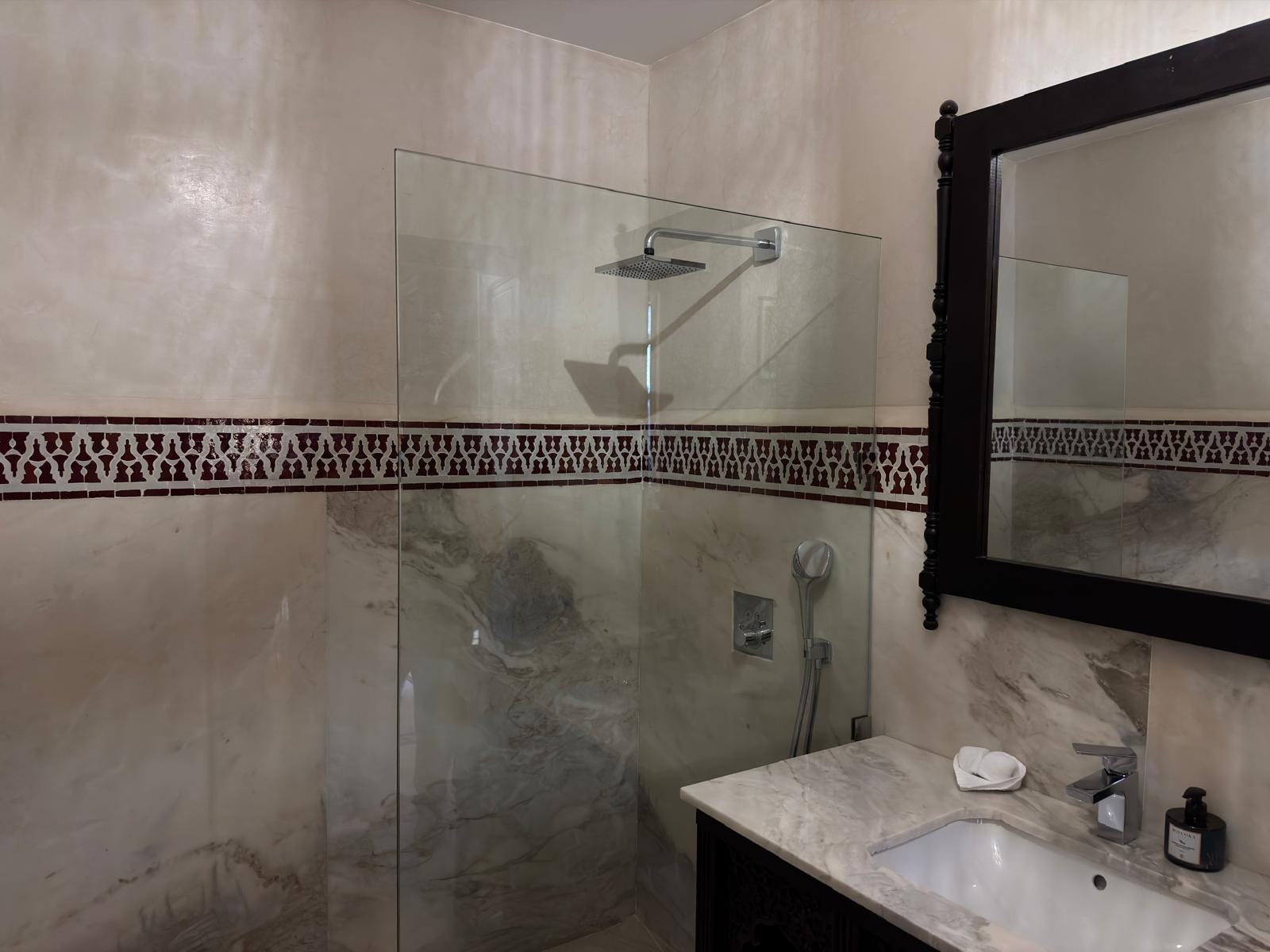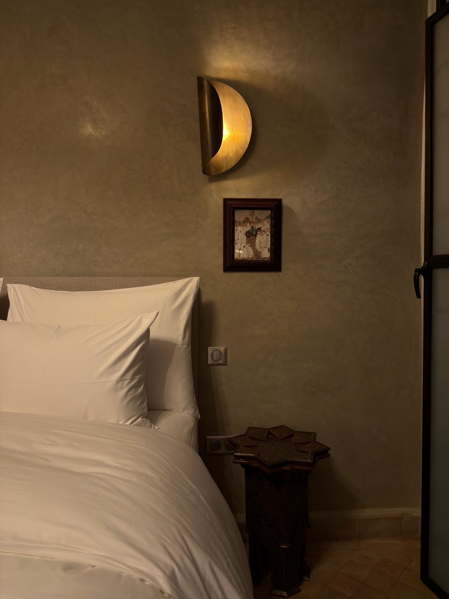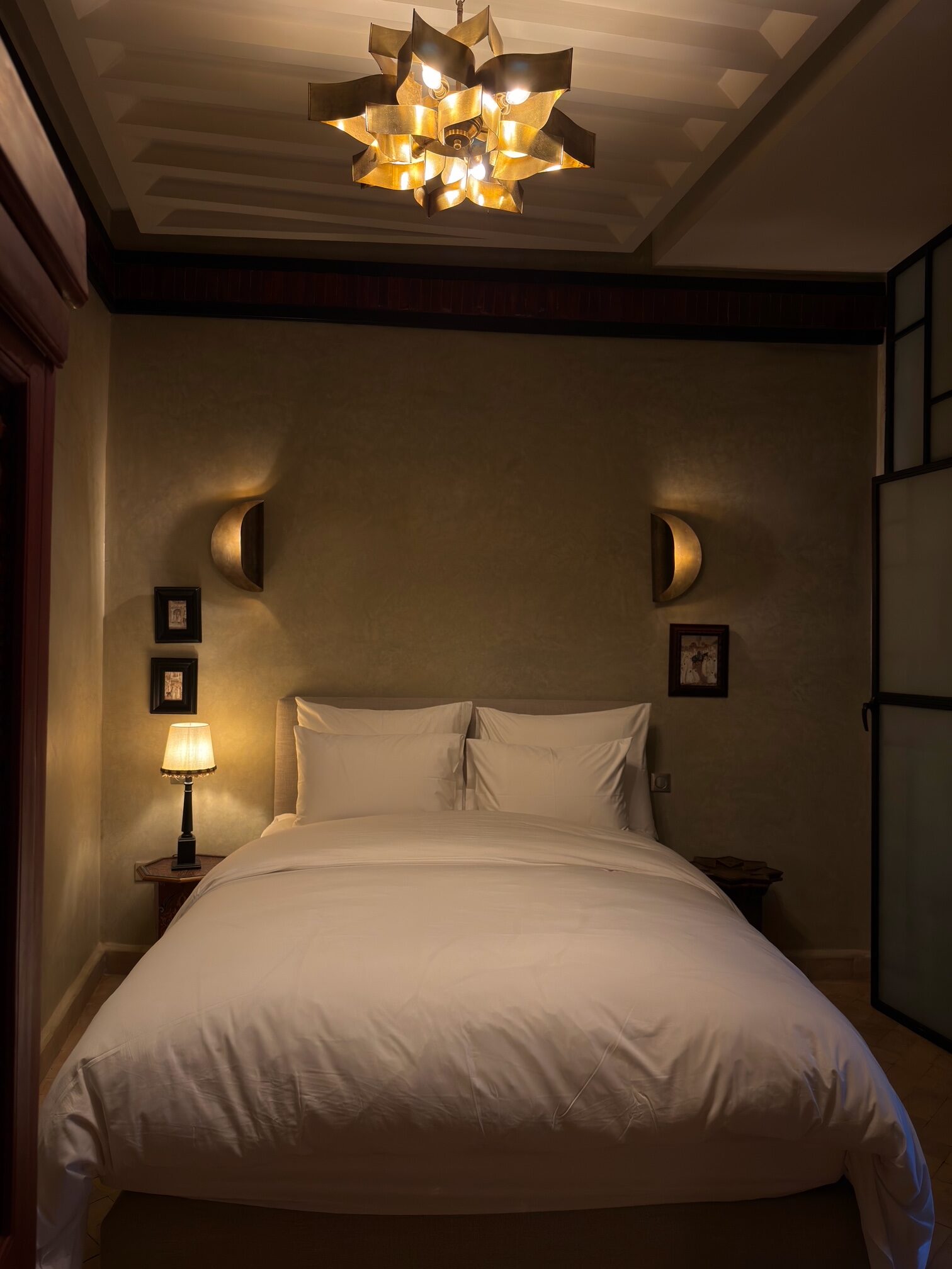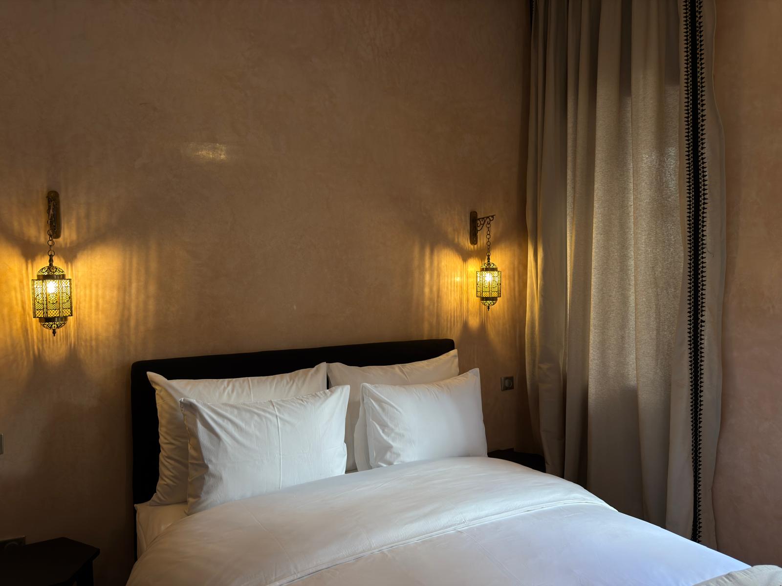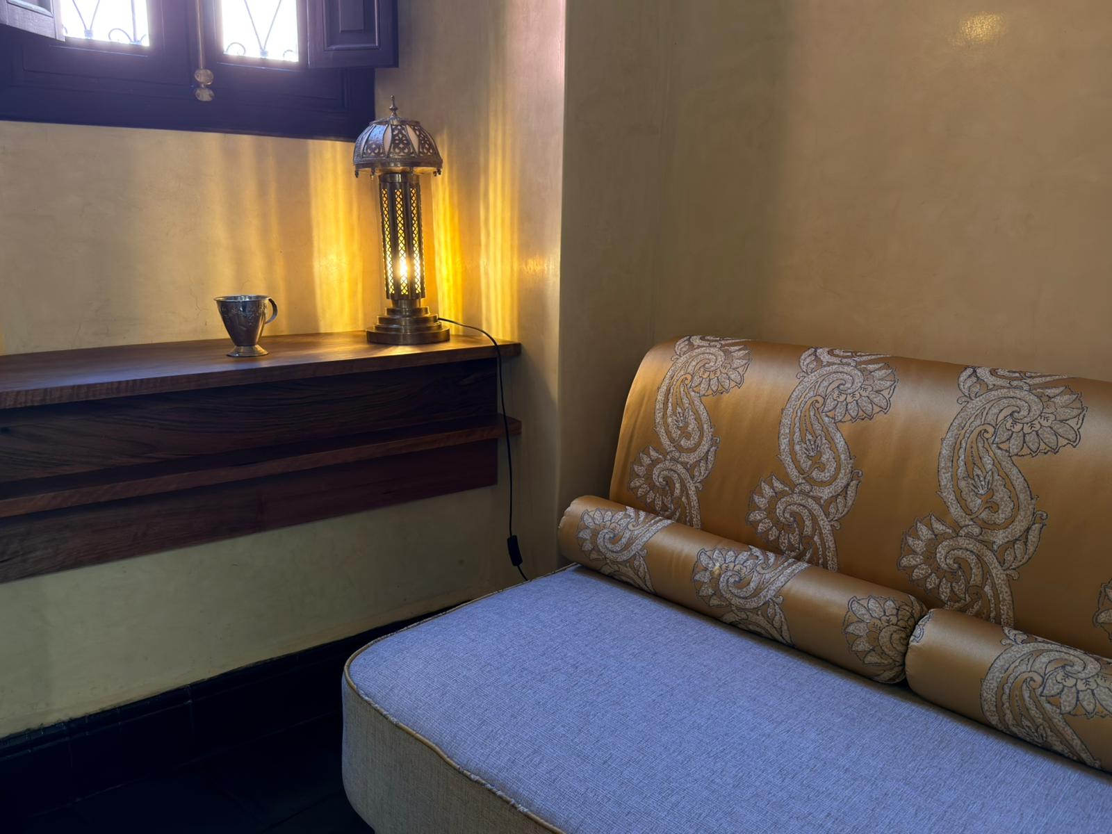 Piccola nelle dimensioni ma preziosa per la sua atmosfera, invita alla calma e al riposo. Una camera accogliente, soffusa e avvolgente, pensata come una parentesi di serenità nel cuore della medina.